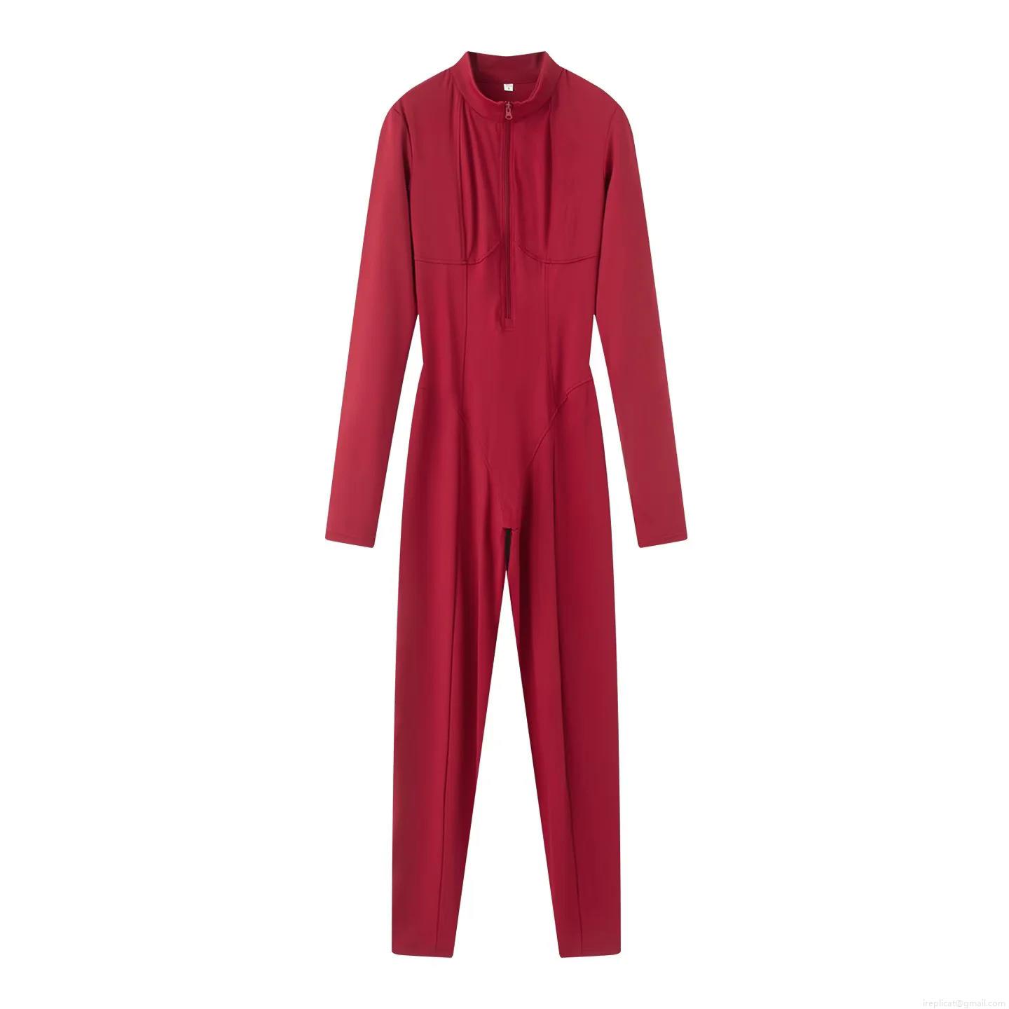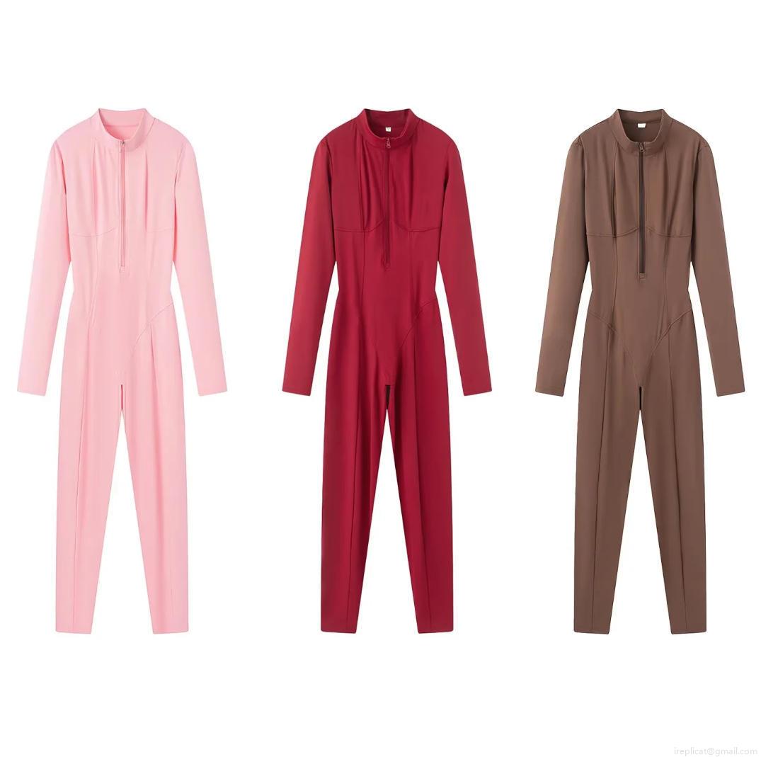 Solid Color, Zipper, Mock Neck, Seam Seam, Waist Shaping