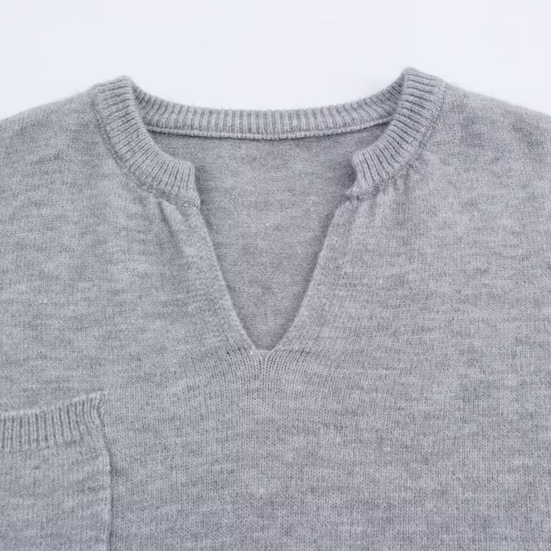 Solid Color, Crimping, V-neck, Knitted Texture, Threaded End