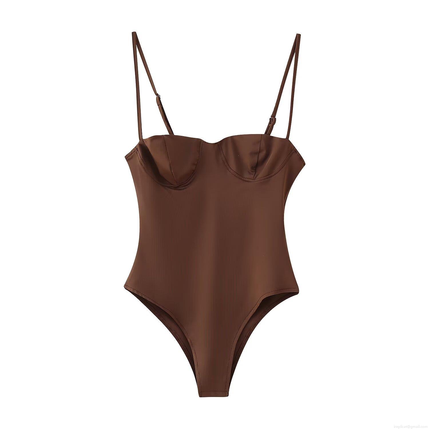 Solid Color, Splice, Collage, Backless, Thin Shoulder Straps, Shaping Cups
