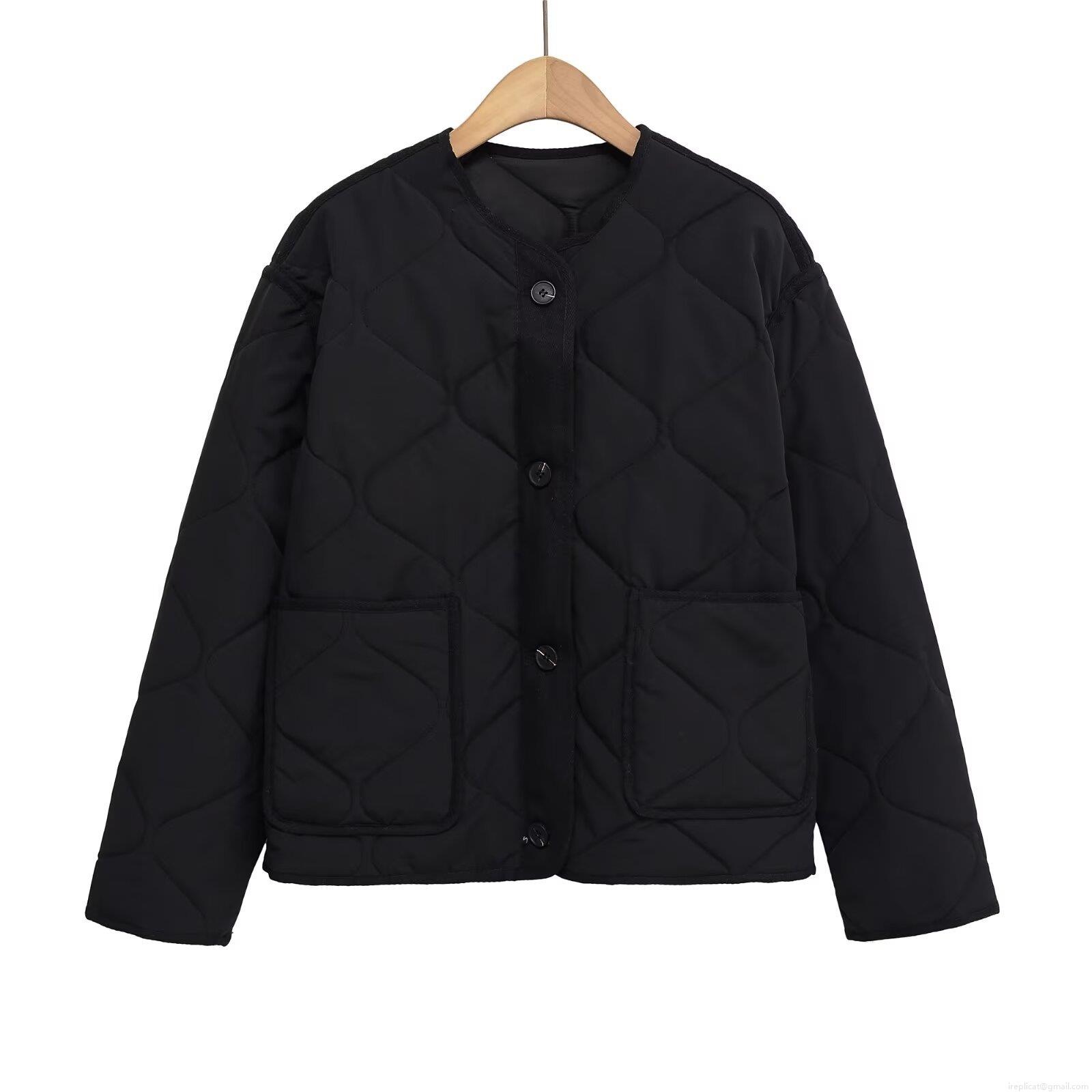 Black Contrasting Buttons, Double Patch Pockets On The Front, Diamond Quilting Stitching