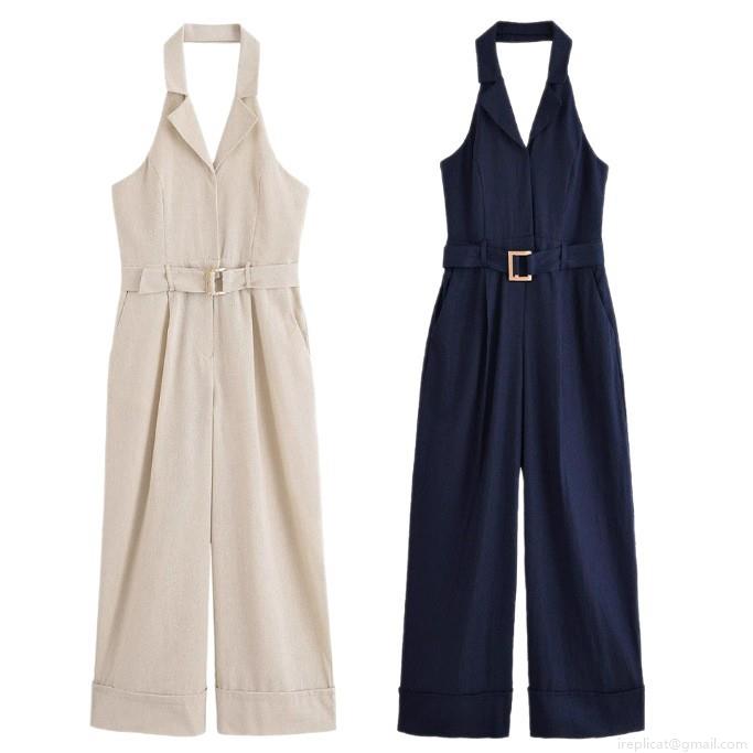 Solid Color, Neckband Design, Wide-leg Style, Suit Lapel, Gold Square Buckle Belt