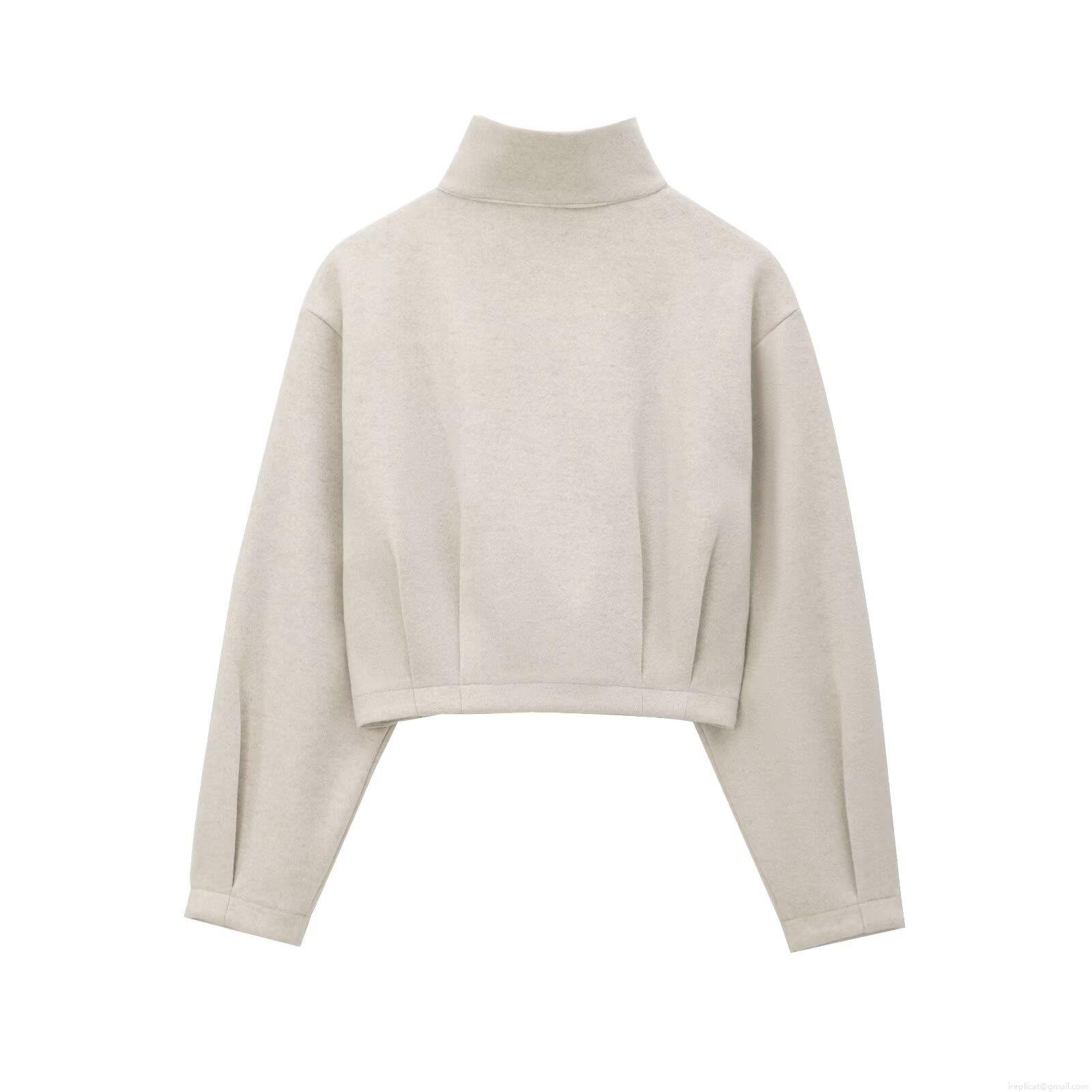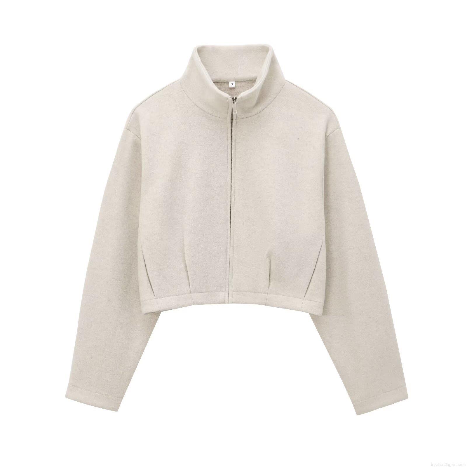 Solid Color, Zipper, Elastic Waistband, Stand-up Collar, Wide-leg, Dropped Shoulder Sleeves