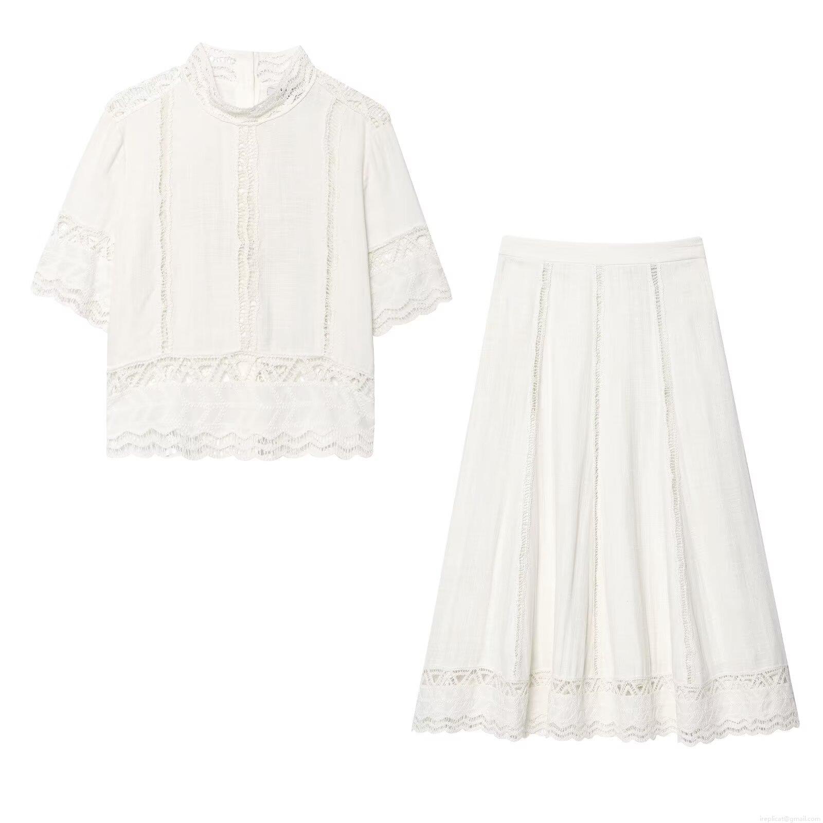 Solid Color, Embroidery, Hollow Out, Lace Trim, Crochet, Stand-up Collar, Invisible Zipper