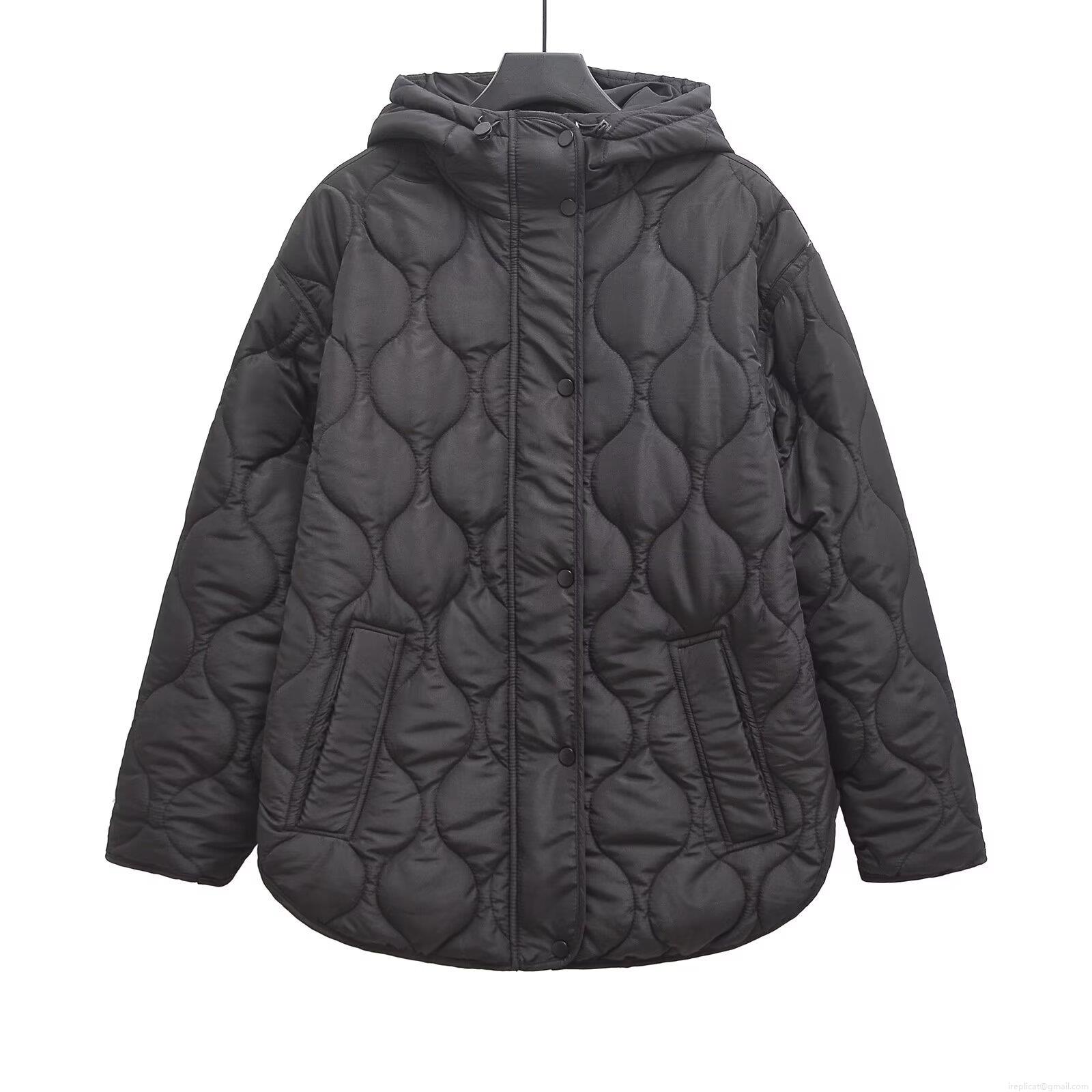 Solid Color, Wave, Snap Fasteners, Hood, Wavy Quilting