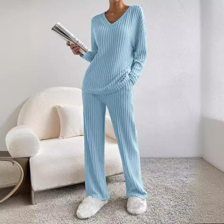 Solid Color, Knitting, Vertical Stripes, V-neck, Pit Stripes