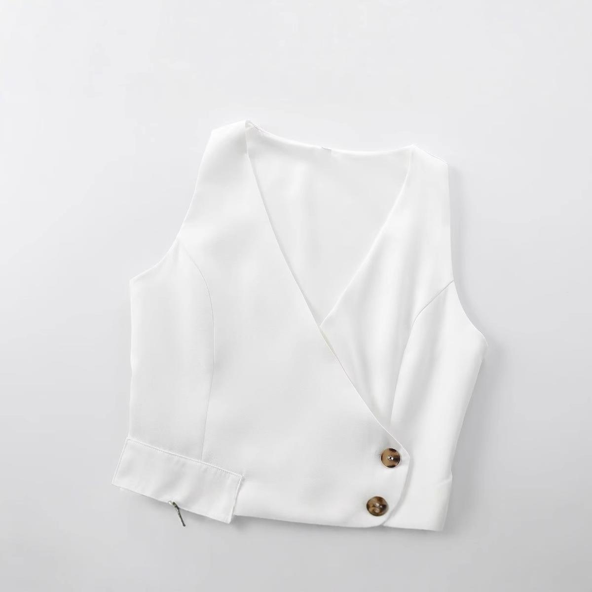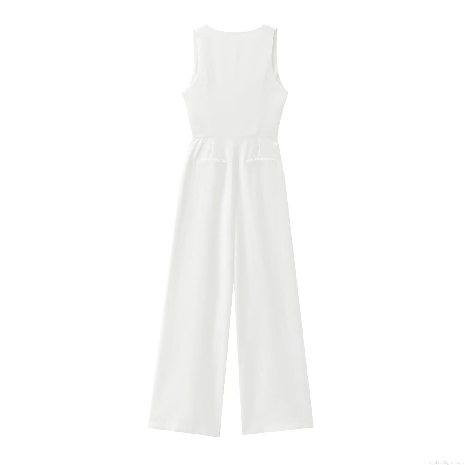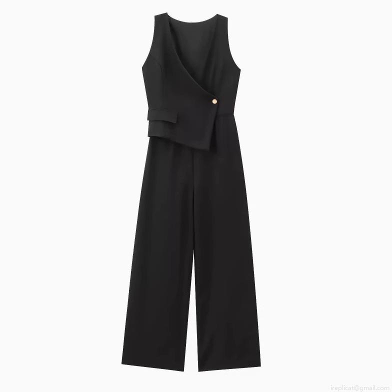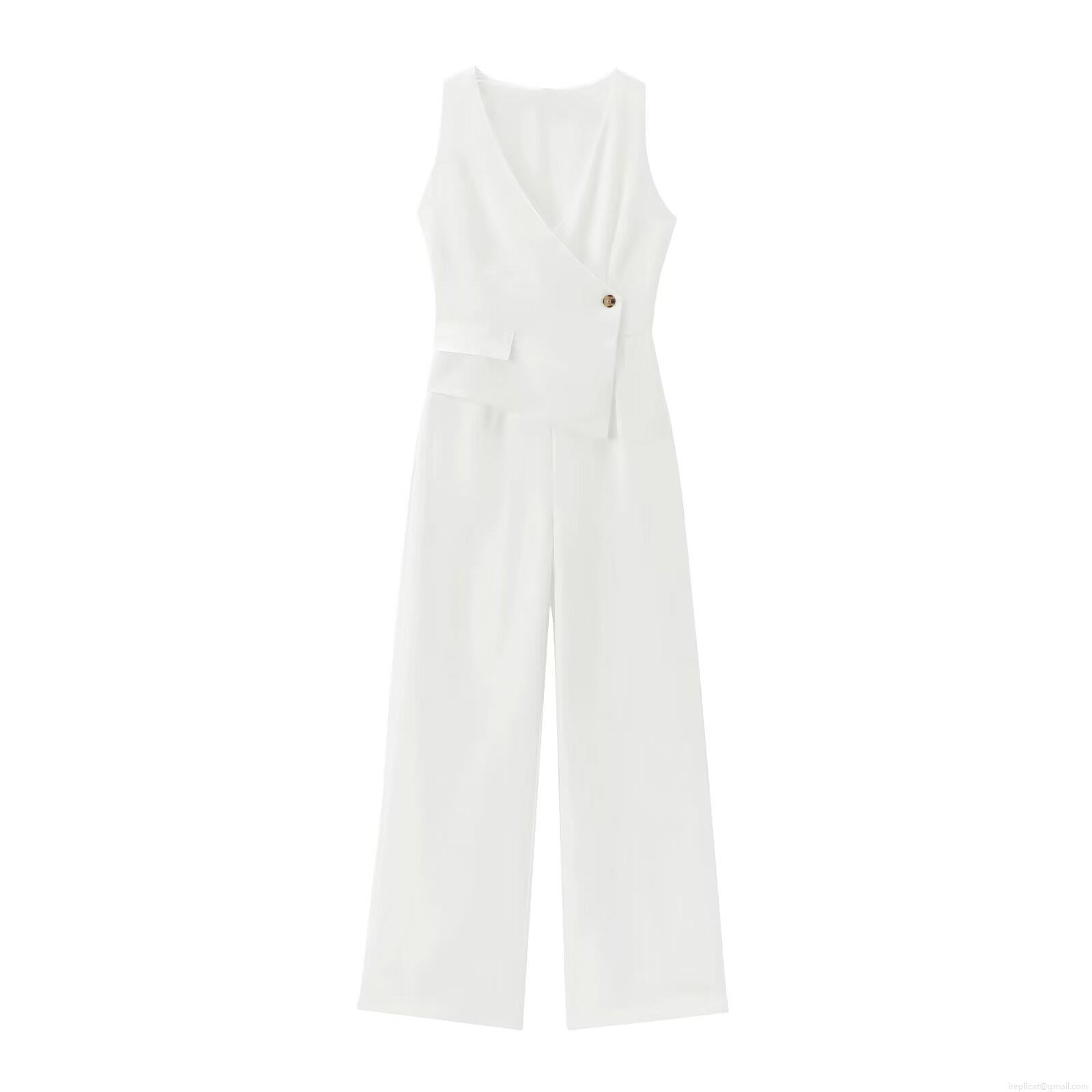 Solid Color, Wide-leg Design, Single-breasted Decoration, Asymmetrical V-neck