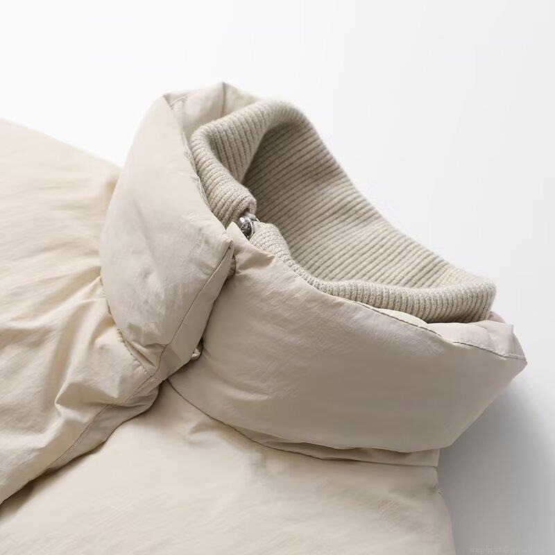 Solid Color, Stand-up Collar, Knitted Patchwork, Quilted Design