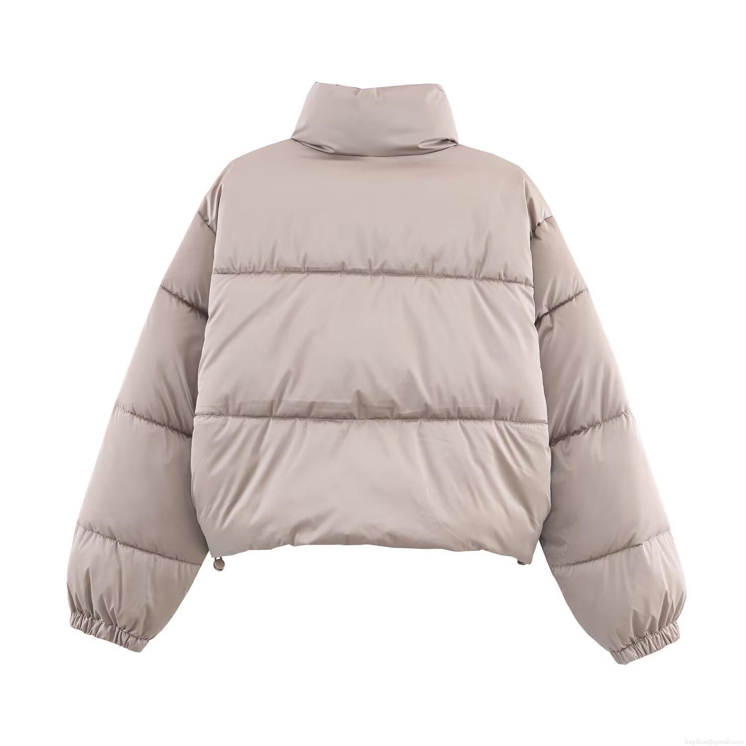 Solid Color, Pocket, Quilting, Glossy, Stand-up Collar