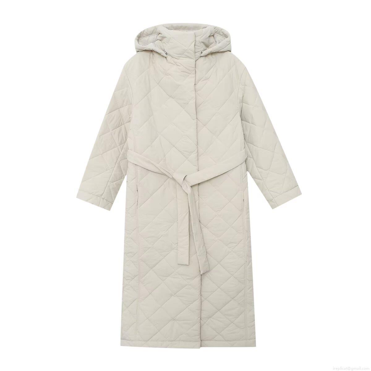 Solid Color, Diamond Pattern, Quilting, Belt, Lace, Hood