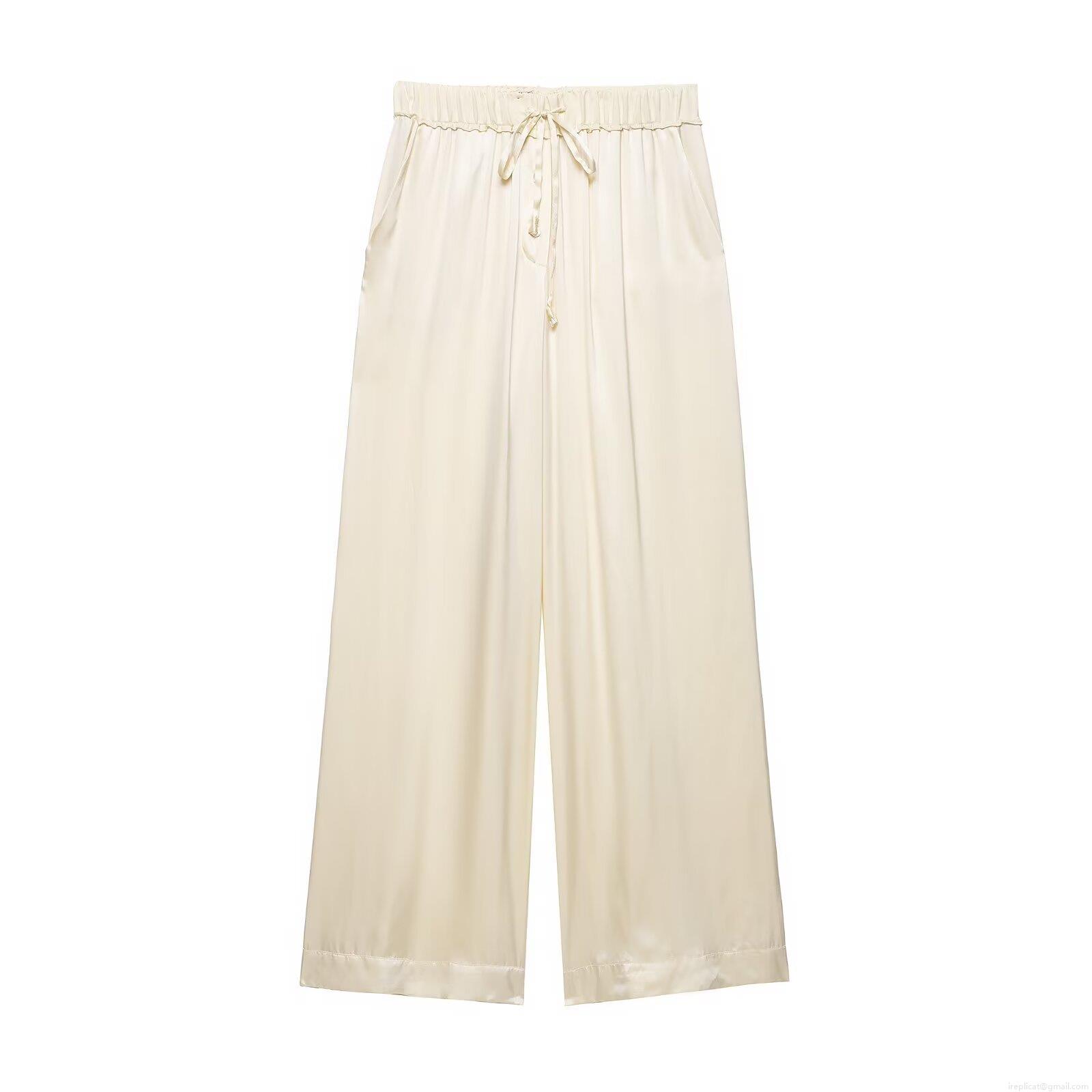 Solid Color, Drawstring Design, Satin Finish, Sticker Bag, Wide-leg Cut