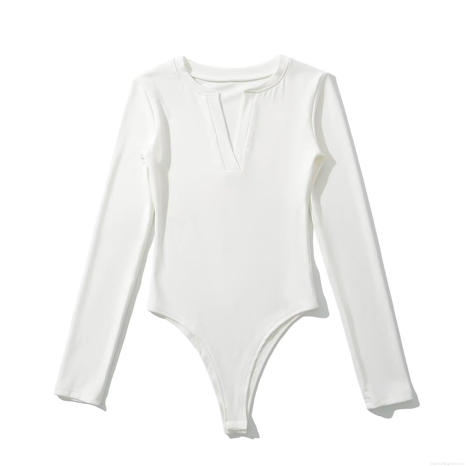 Solid Color, Ribbed Knit, One-piece Design, Deep V-neck