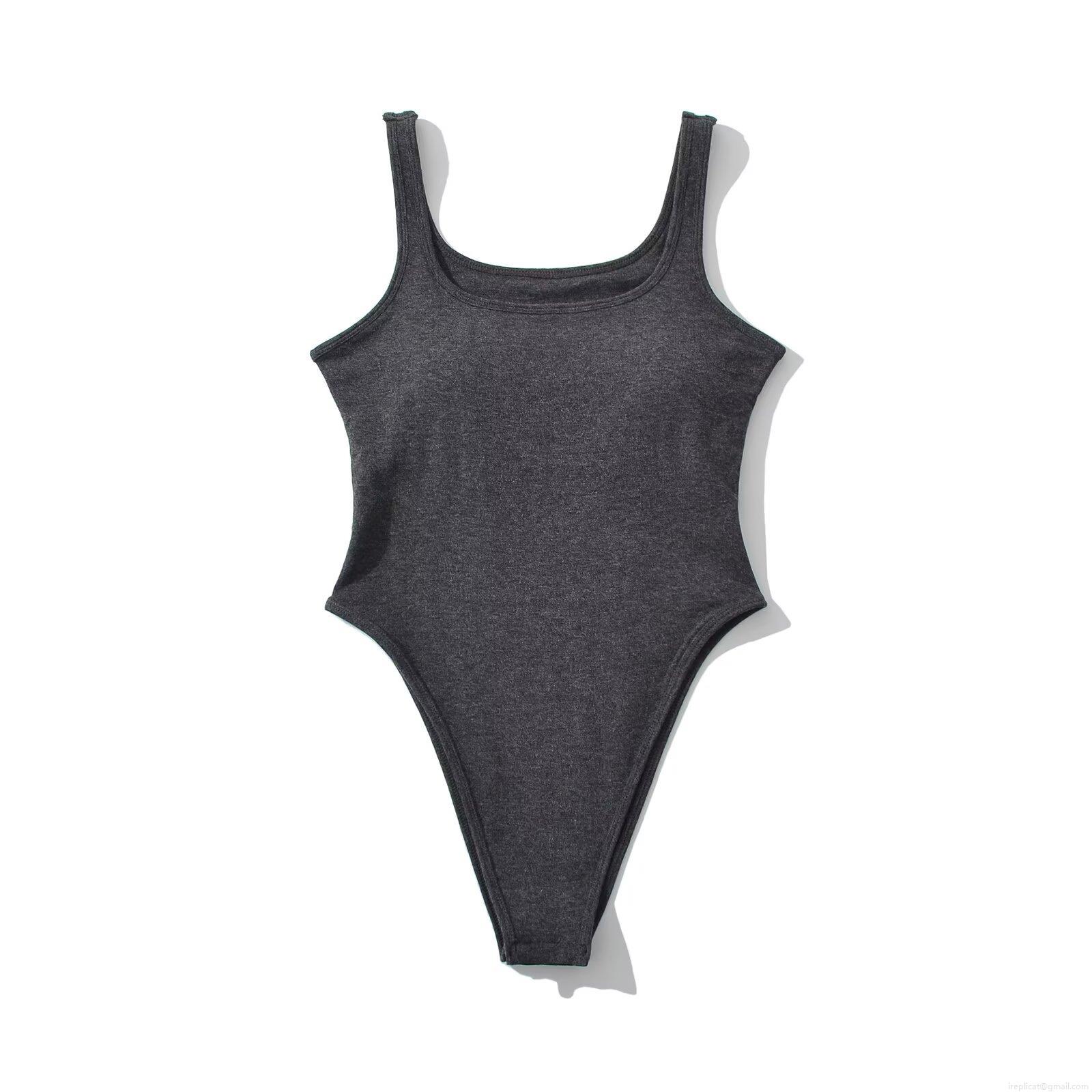Solid Color, Screw Thread, High Fork, Square Collar, U-neck, Fine Rib Knit