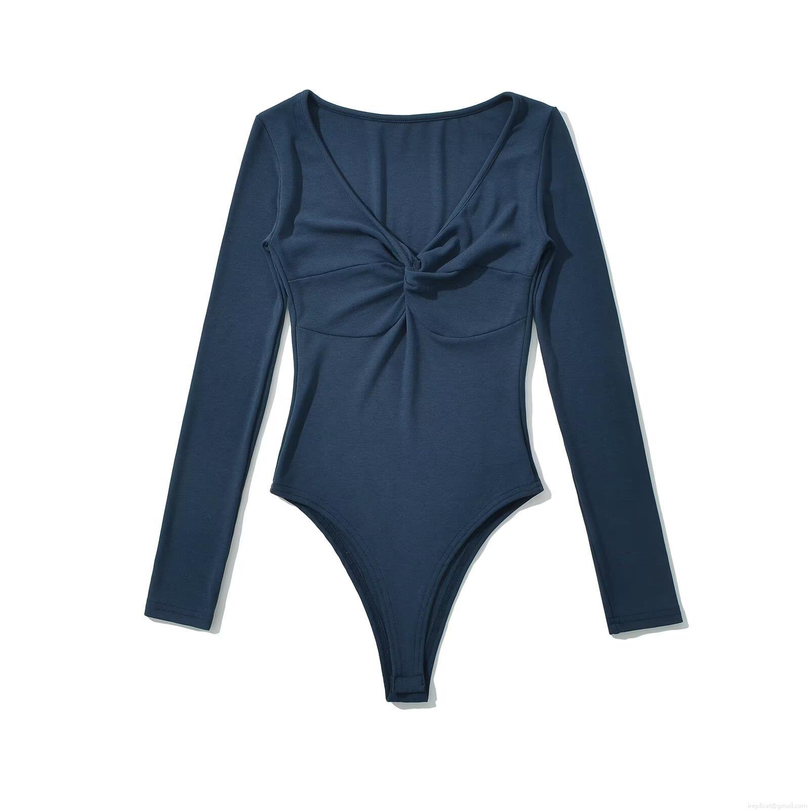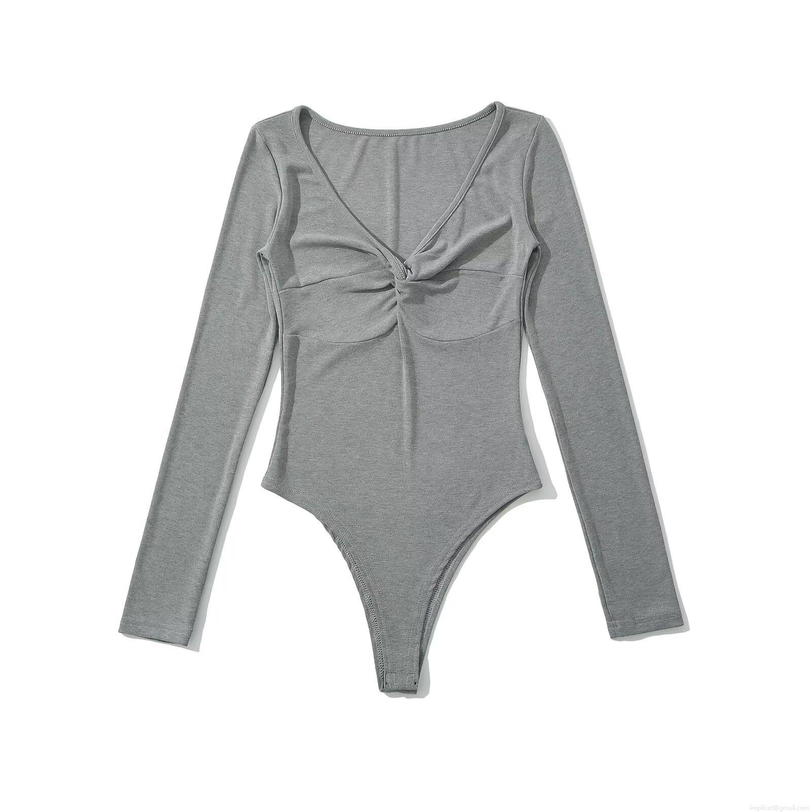 Solid Color, Knot Design, Deep V-neck, Slim Fit