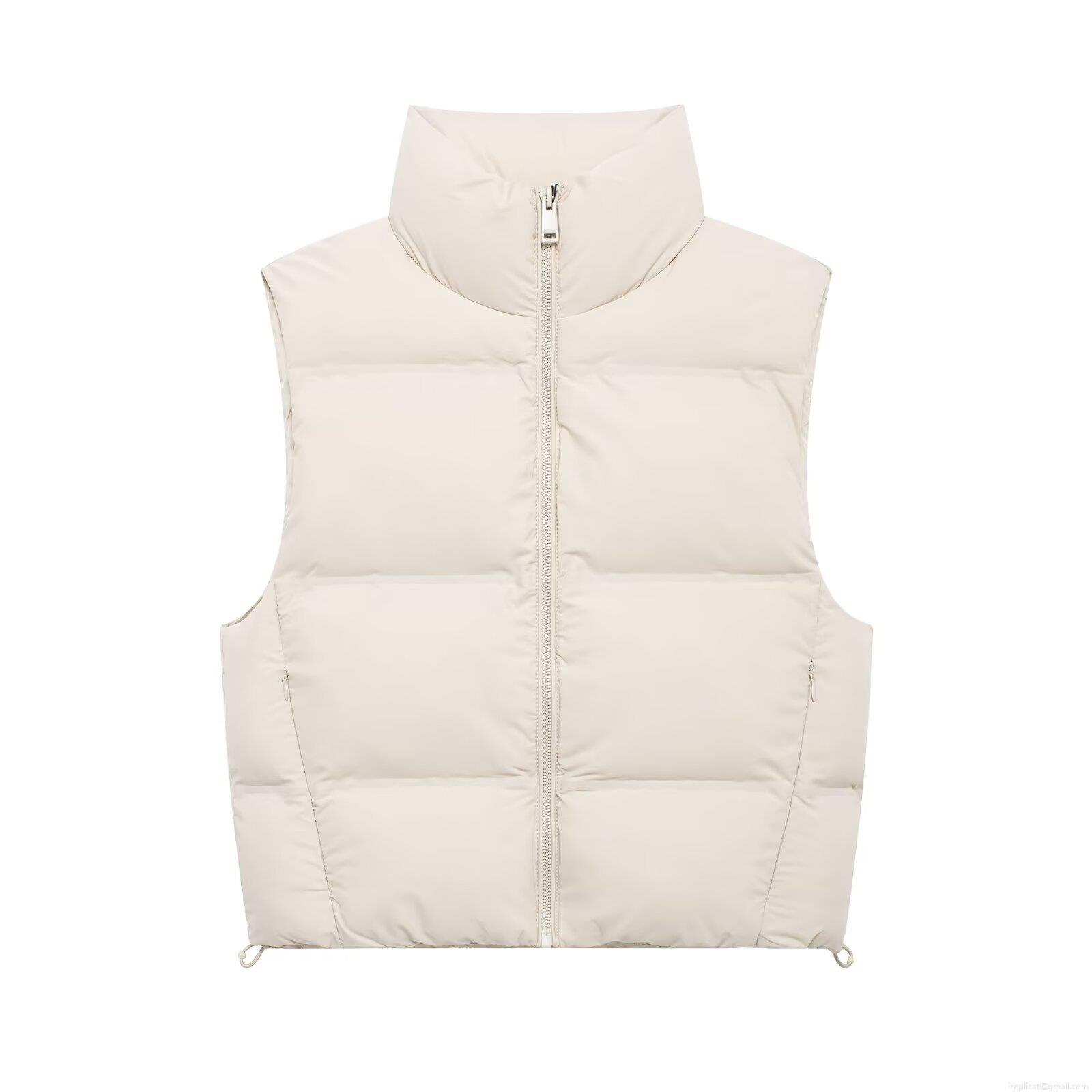 Solid Color, Metal Zipper, Quilting, Stand-up Collar Design, Drawstring At The Hem